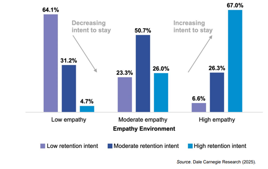 Employees in high-empathy environments are far more likely to report a high intent to stay.